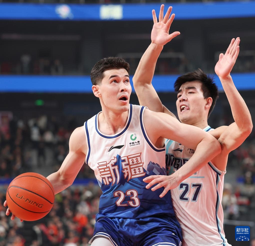 當日,在2023-2024賽季中國男子籃球職業聯賽(CBA)常規賽第39輪比賽中,新疆伊力特隊主場117比98戰勝青島國信水產隊。