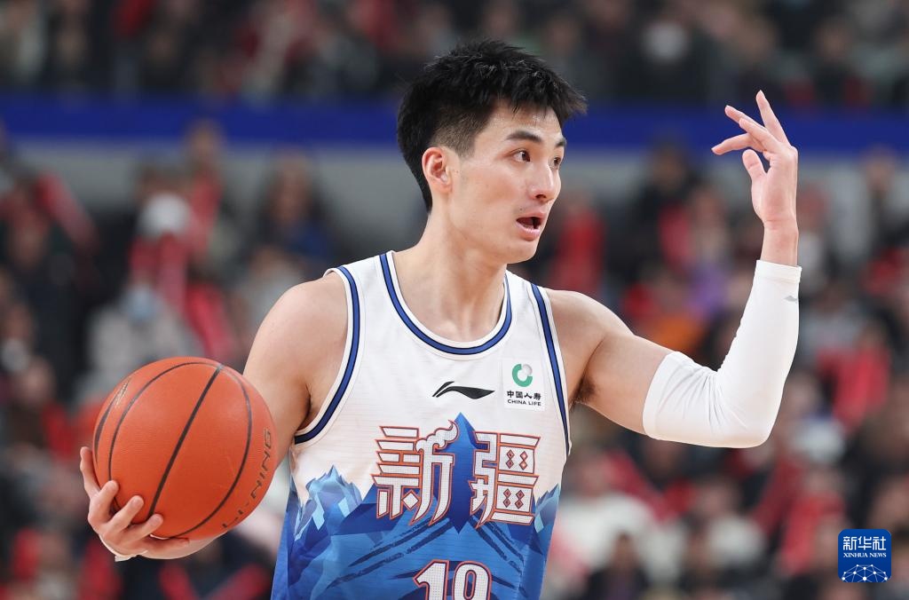 2月5日,新疆伊力特隊球員于德豪在比賽中提示隊友跑位。新華社記者 胡虎虎 攝
