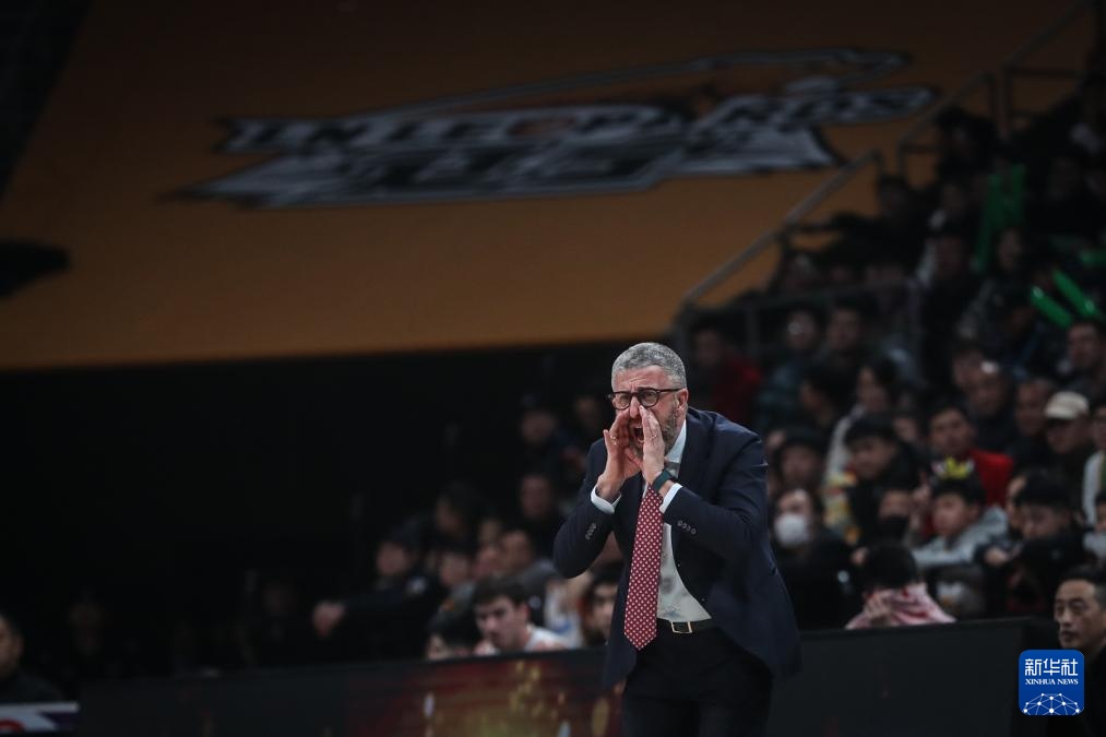 2月5日,北京北汽隊主教練喬里歐在比賽中指導球員。新華社記者 潘昱龍 攝