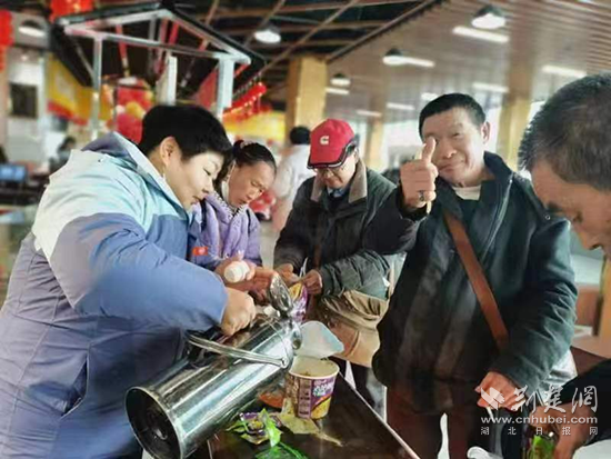 而這樣的場景在湖北公路上并不算特殊。平林管理所溫馨向陽志愿者為滯留的40余名司乘提供晚餐、聯系住宿酒店;煙店管理所黨員突擊隊為滯留的百余名司乘提供免費愛心早餐;孝感北收費站為80余名滯留司乘設置“冰雪中的移動餐廳”,免費提供熱水、面條等暖心服務……一個個“司機之家”遍布于司乘的回鄉路途,這數不勝數的溫馨畫面,既是湖北公路人最習以為常的工作場景,也是令他們印象深刻的崗位故事。