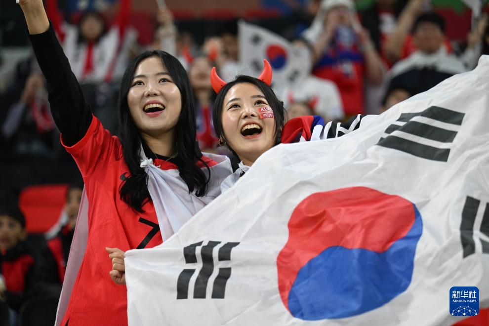 2月6日,韓國球迷在比賽前為球隊加油助威。新華社記者 孫凡越 攝