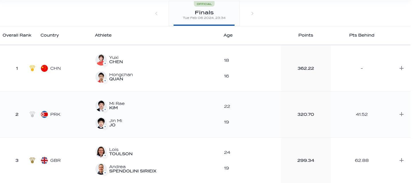 最終,陳芋汐/全紅嬋還是以斷層優(yōu)勢(shì)奪冠,兩人再次展現(xiàn)了在該項(xiàng)目上的統(tǒng)治力。同時(shí),這也是全紅嬋本屆世錦賽第2金。(完)
