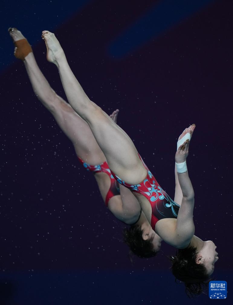 2月6日,陳芋汐/全紅嬋(右)在比賽中。新華社記者 雒圓 攝