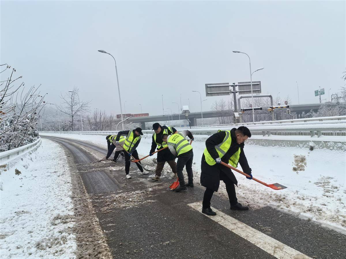 “人員與車輛已到達(dá)指定位置,請(qǐng)大家立即開始行動(dòng)!”上午10時(shí),突擊隊(duì)員到達(dá)高新二路,積極開展道路除雪破冰工作。隊(duì)員們自行籌措了鐵鎬、鐵鍬、掃帚等各類適合除雪破冰的工具,分工協(xié)作、配合默契、手持鐵锨全力清除路面上的積雪、厚冰和樹枝。
