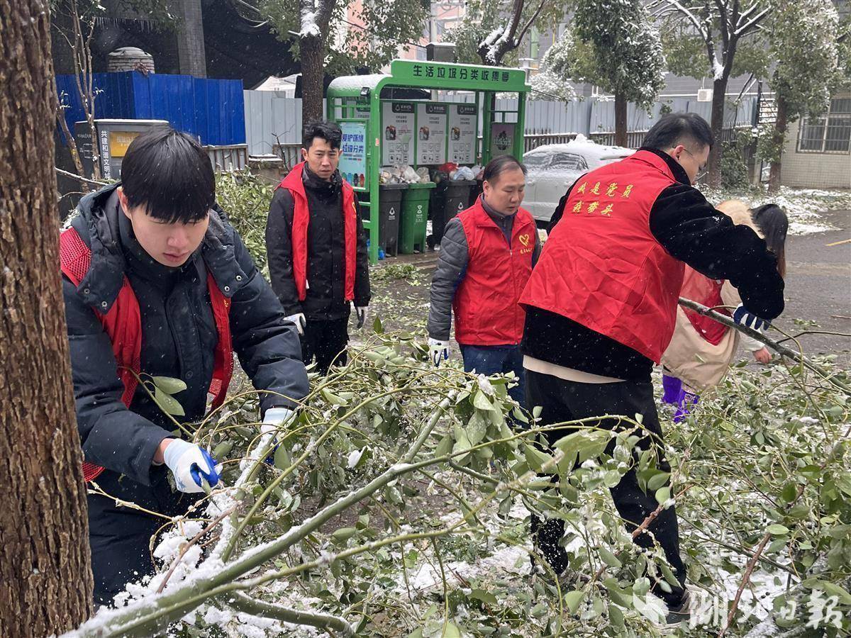 “我是黨員,我先上!”東西湖區(qū)將軍路街銀花社區(qū)“銀領(lǐng)先鋒”志愿服務(wù)隊隊員們積極參與掃雪除冰,為轄區(qū)內(nèi)居民安全出行保駕護(hù)航。長青街團(tuán)結(jié)社區(qū)高齡黨員秦秀蘭“不甘落后”,手持鐵鍬積極加入鏟雪隊伍,為居民掃出一條“溫暖路” 。老戰(zhàn)士行動團(tuán)團(tuán)長劉天順帶領(lǐng)團(tuán)里的年輕退役軍人志愿者和其他青年志愿者迅速組建鏟雪突擊隊,深入社區(qū)鏟雪除冰。