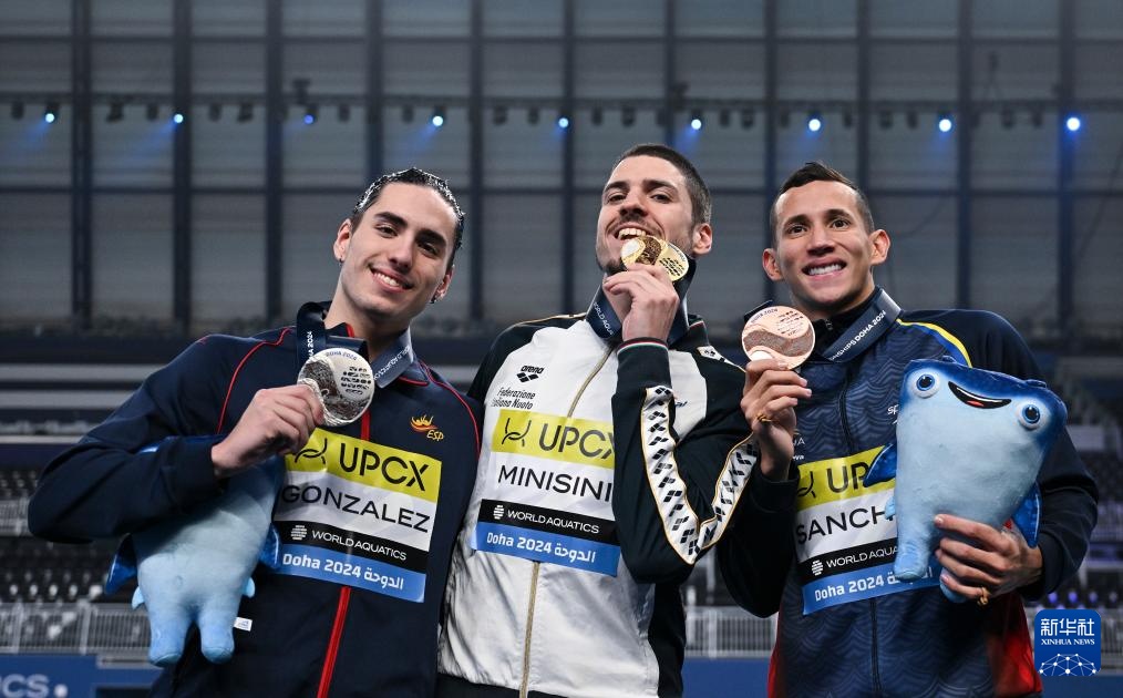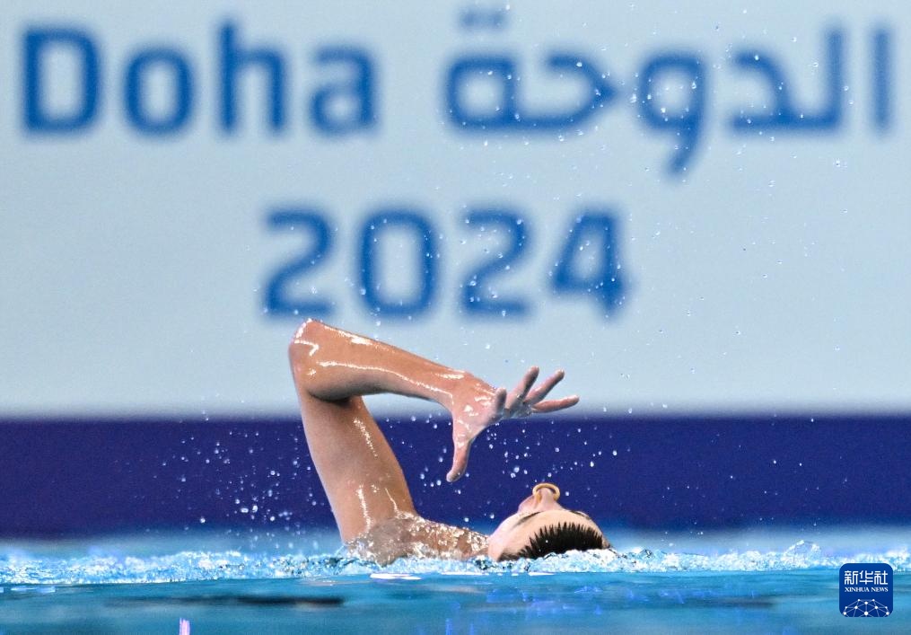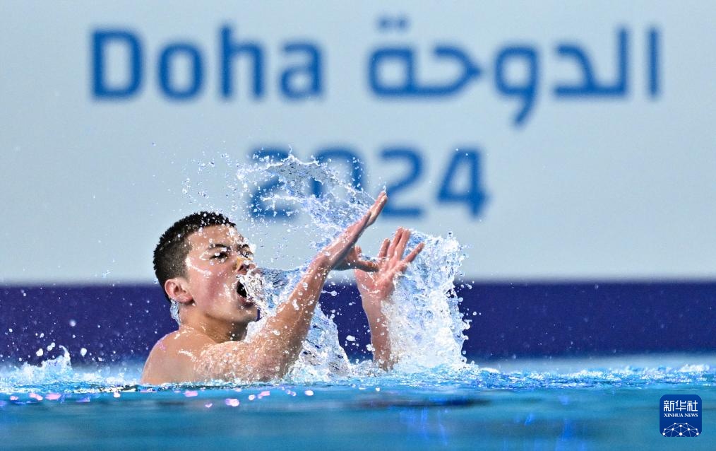當(dāng)日,2024年世界游泳錦標(biāo)賽花樣游泳男單自由自選決賽在卡塔爾多哈舉行。