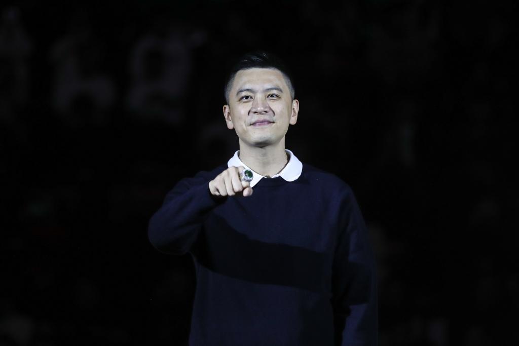 2023年11月15日,楊鳴在2023-2024賽季中國男子籃球職業聯賽(CBA)常規賽第十輪比賽前領取上賽季冠軍戒指。新華社記者 潘昱龍 攝
