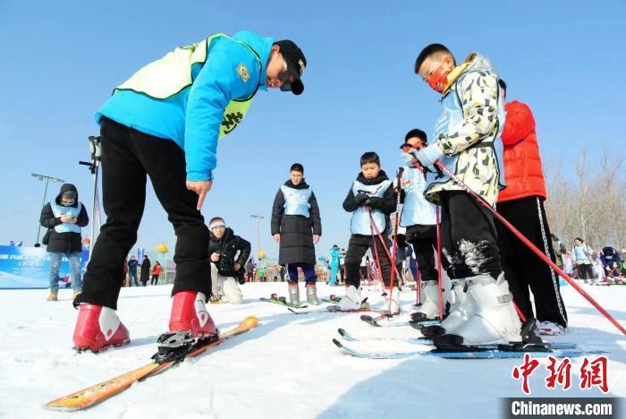 2月7日,天津,滑雪專業教練為參加活動的青少年講解滑雪公開課。當日,全國家庭冰雪日天津站啟動,來自天津全市140組家庭匯聚一起,感受冰雪運動樂趣。中新社記者 佟郁 攝