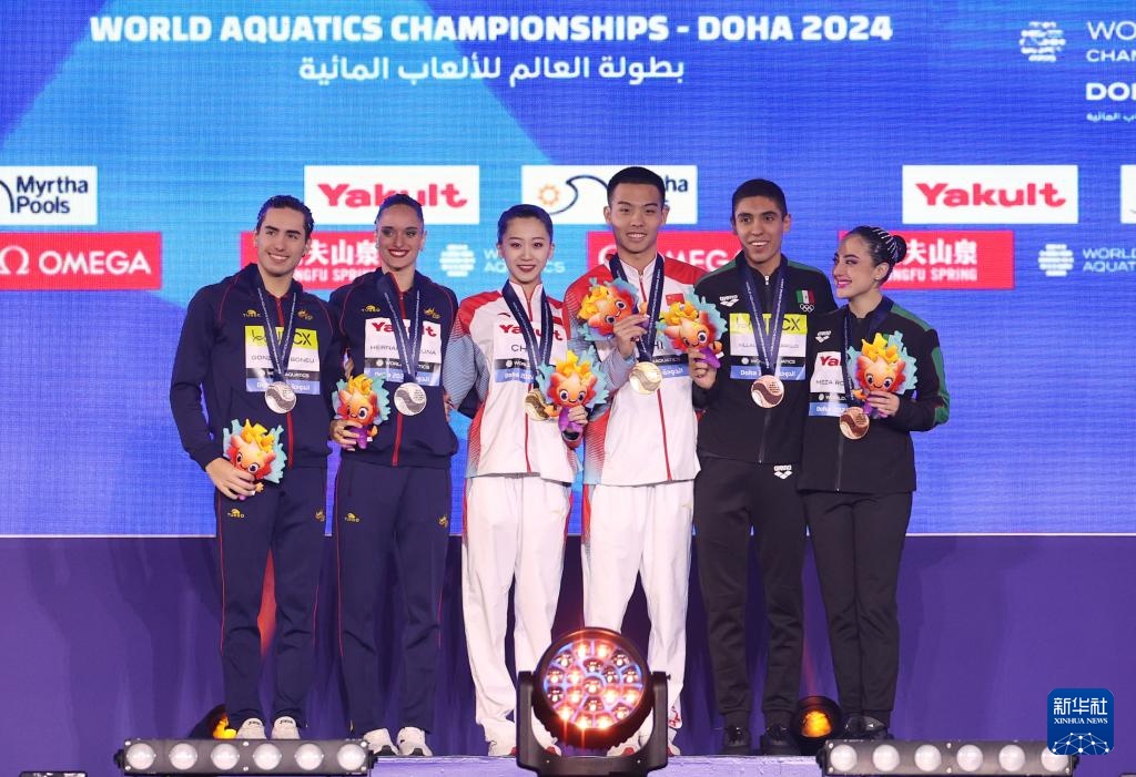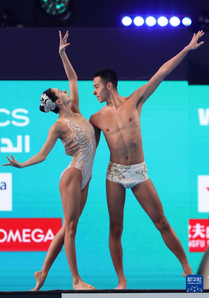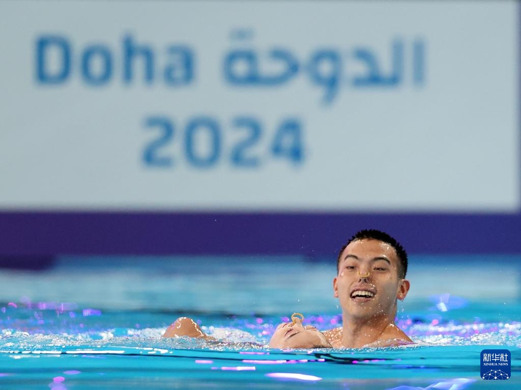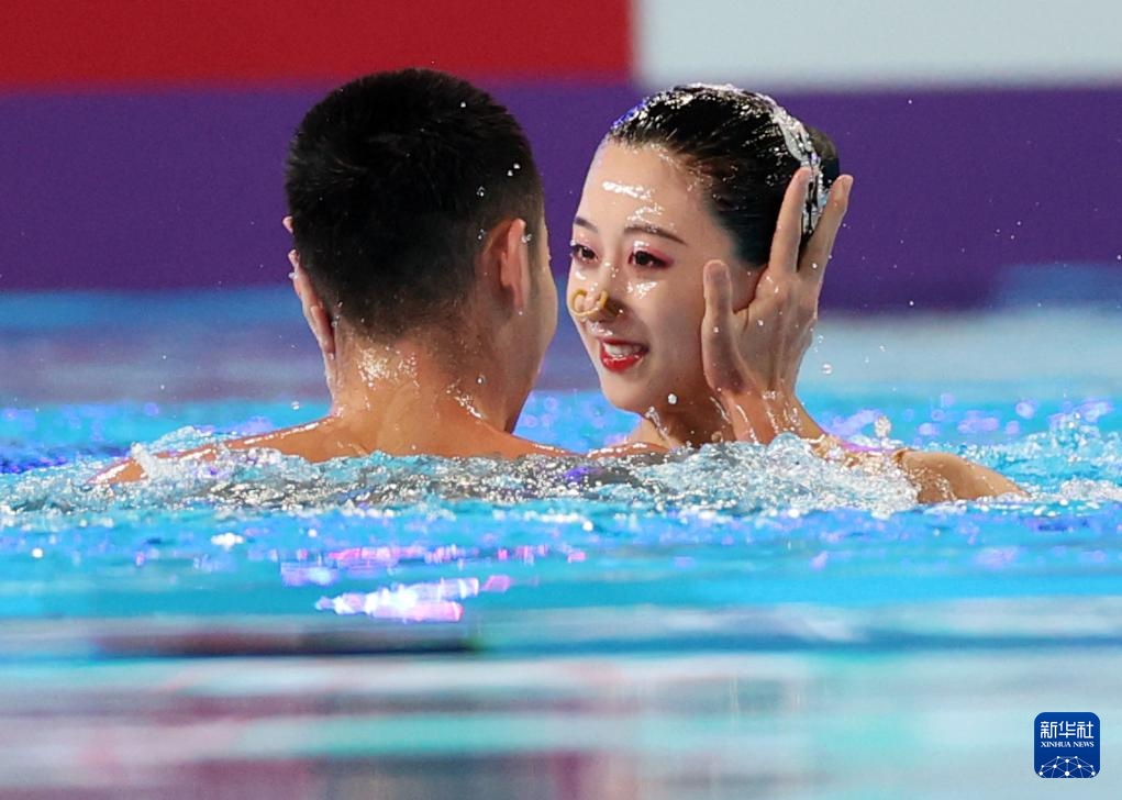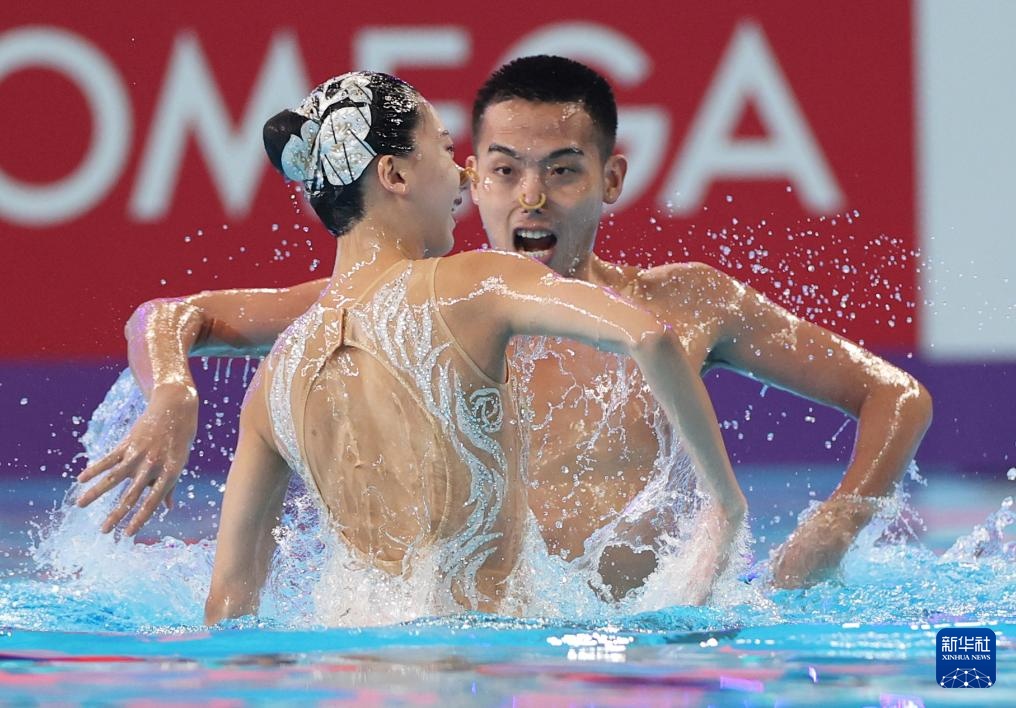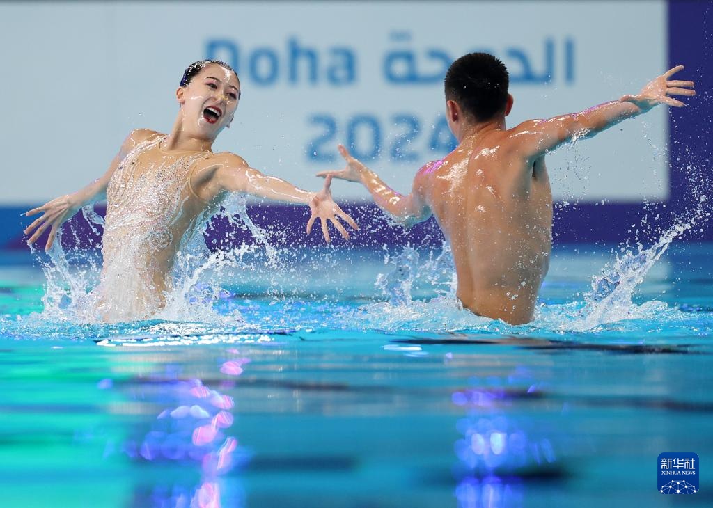 當日,在卡塔爾多哈舉行的2024年世界游泳錦標賽花樣游泳項目混雙自由自選決賽中,中國組合程文濤/石浩玙以224.1437分的總成績奪得冠軍。