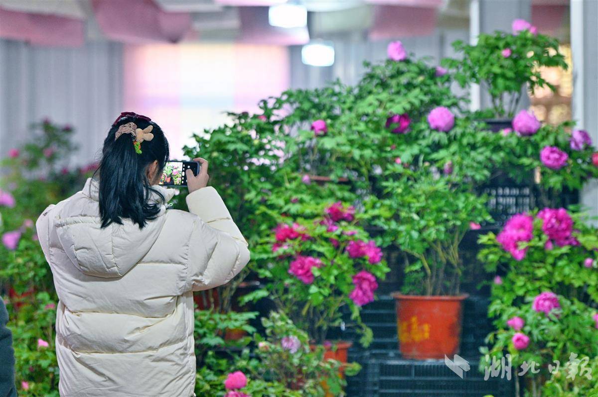走近牡丹展區(qū),一陣陣清香沁人心脾。2500盆牡丹風(fēng)姿綽約,紅、白、紫、粉、黃色彩斑斕,皇冠型、臺(tái)閣型、荷花型、繡球型牡丹爭奇斗艷,盡顯花王風(fēng)采。“萬事興龍”“龍馬精神”……,一組組以龍年元素為主的牡丹小品映入眼簾,大紅的春聯(lián)、龍年擺件和雍容華貴的牡丹為新春佳節(jié)增添喜慶的色彩。寓意吉祥富貴的花王牡丹為春節(jié)帶來濃濃年味,吸引不少市民帶著家人朋友前來打卡、拍照。