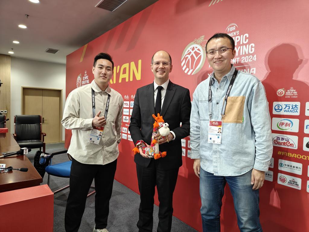 在2018年,扎格里斯曾造訪西安出席世界籃球峰會,而今年的女籃奧運資格賽則是他第一次以國際籃聯秘書長的身份回到西安?!拔靼彩且蛔利惖某鞘校疫€記得當時在西安城墻南門舉行的盛大的歡迎儀式。這次來到西安,我在上午去參觀了兵馬俑和秦始皇陵,我被這座城市深深地吸引了。”扎格里斯笑著說道。