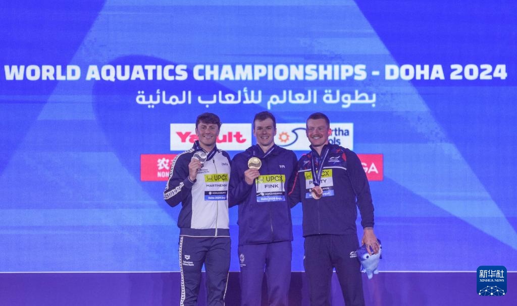 當(dāng)日,在卡塔爾多哈舉行的2024年世界游泳錦標(biāo)賽游泳項(xiàng)目男子100米蛙泳決賽中,美國(guó)選手尼克·芬克以58秒57的成績(jī)奪冠,意大利選手馬丁嫩吉獲得亞軍,英國(guó)選手皮蒂獲得季軍。