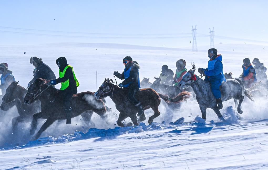 凌冽的寒風中,數百匹蒙古馬奔馳在茫茫雪原,激起陣陣雪霧。這是在錫林郭勒盟舉行的蒙古馬超級聯賽,也被當地人稱為“馬超”。錫林郭勒盟馬文化底蘊豐厚,賽馬比賽一直深受當地牧民喜愛。