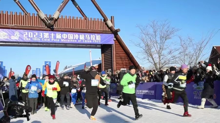 選手們在第十屆中國冷極馬拉松比賽中出發。