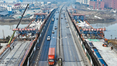 示范區優化區域交通路網,城鄉交通一體化不斷深入,群眾出行便利度進一步增強。圖為平黎公路嘉善段改(擴)建工程橋梁建設現場。 胡凌翔攝(影像中國) |