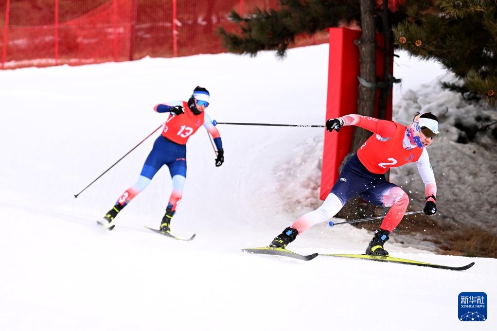 2月14日,黑龍江選手池春雪(右)在比賽中,她以41分26秒0的成績奪得冠軍。