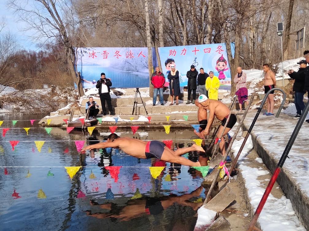 內蒙古呼倫貝爾市扎蘭屯市的冬泳愛好者在進行冬泳。(溫秀華攝 新華社發)