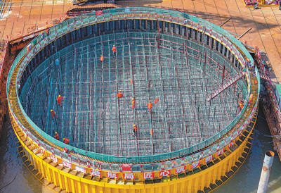 正月初五,浙江寧波舟山港六橫公路大橋二期工程建設現場,一派忙碌景象。 姚 峰攝(影像中國) |
