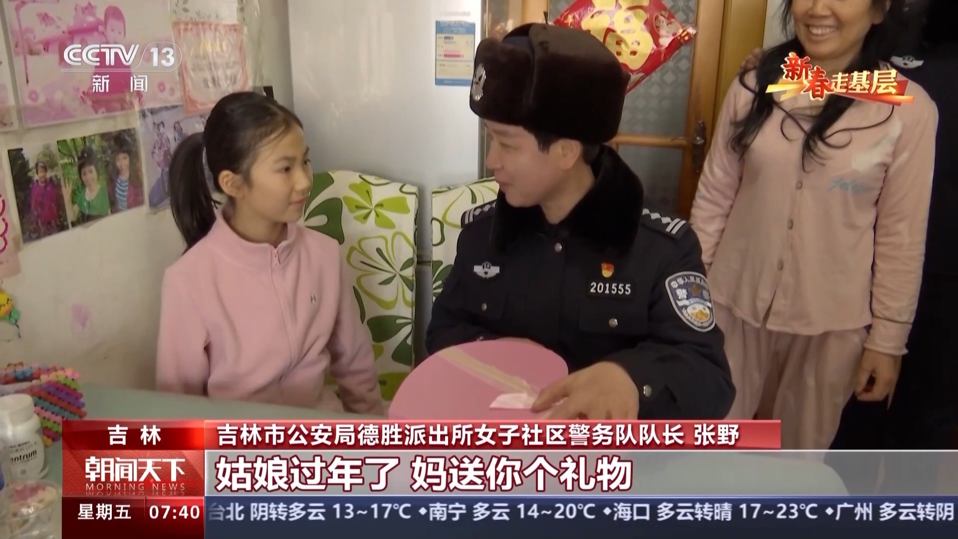 春節前夕,我們《新春走基層》記者來到了這支社區里的女子警務隊。張野是她們的隊長,這天她和隊員要去看看一個叫小金子的姑娘。張野講,小金子今年10歲,父母都是聾啞人,并且已經離婚,媽媽常年在天津一家制造企業打工,日常她和60多歲的姥姥一起生活。她們入戶走訪發現這一情況后,主動進行幫扶,張野還把小金子認了干女兒。