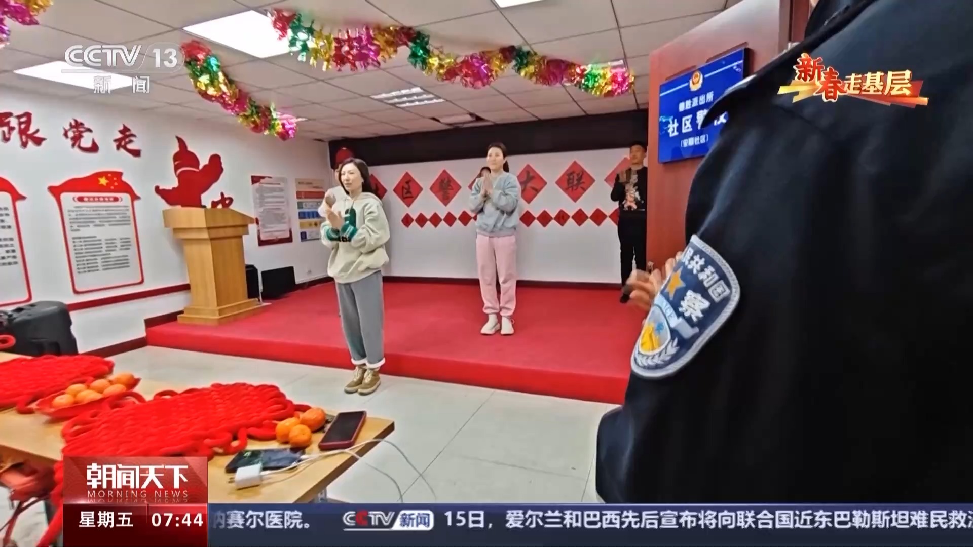 聯歡會開始,演的唱的都是社區里的居民,紅紅的福字,喜慶的中國結,小龍人布偶,居民們唱起來、跳起來、舞動起來,一片歡樂祥和。