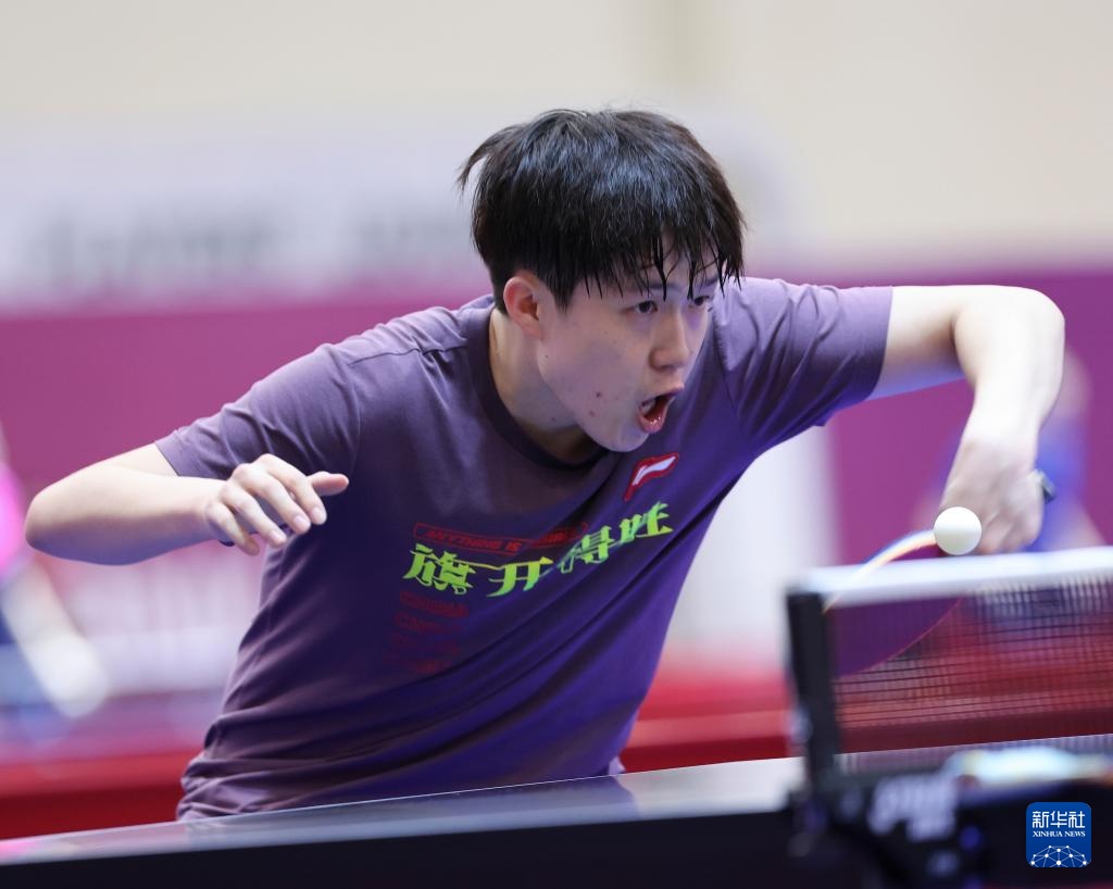 2月15日,中國隊選手王楚欽進行賽前訓練。