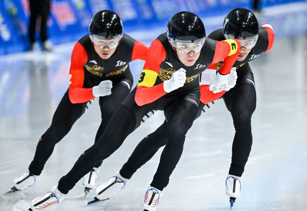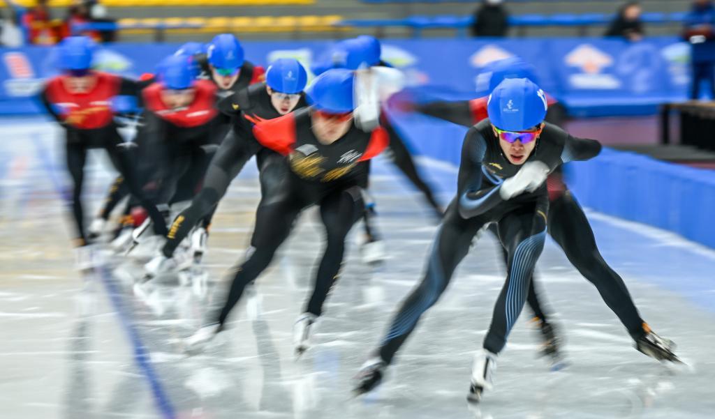 ↑2024年1月11日,選手在速度滑冰公開組男子集體出發半決賽中。