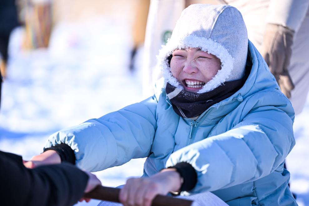 ↑2024年1月19日,一名市民參加雪地扳棍比賽。