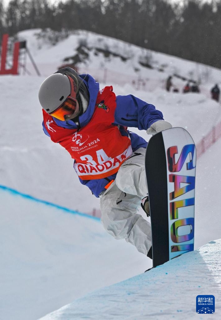 當日,第十四屆全國冬季運動會單板滑雪公開組女子U型場地技巧預賽在內蒙古呼倫貝爾市扎蘭屯金龍山滑雪場舉行。