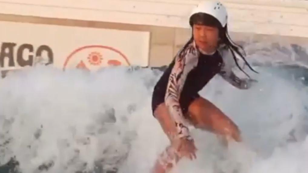 周苡竹在造浪池中進行沖浪訓練