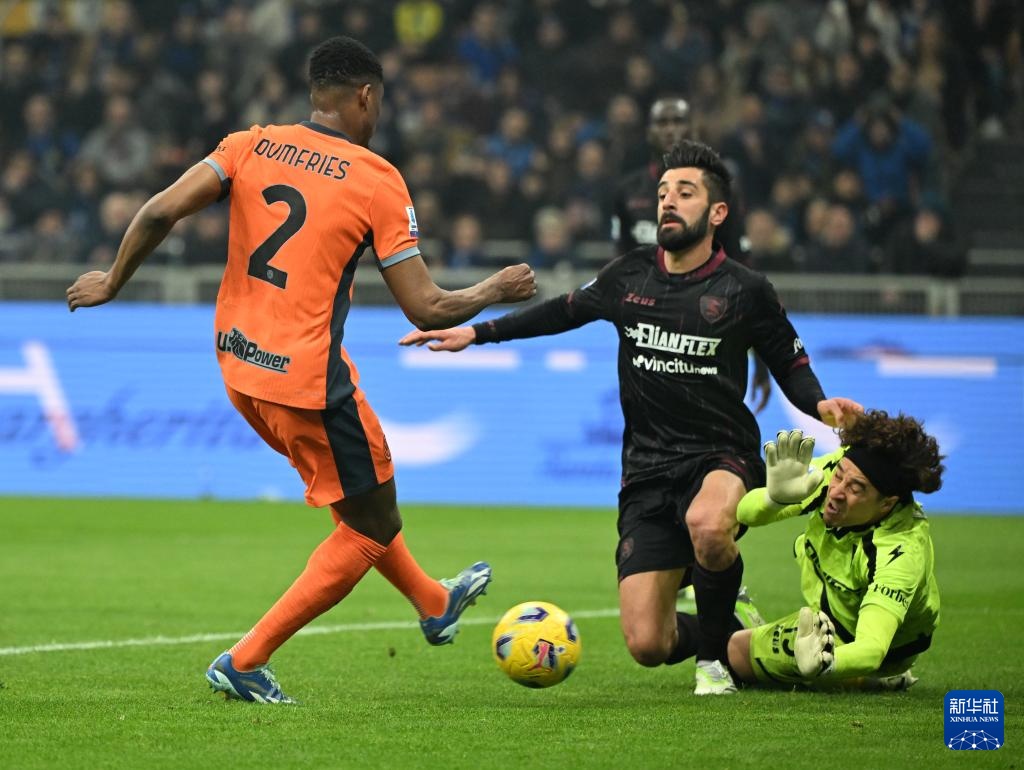 當日,在2023-2024賽季意大利足球甲級聯(lián)賽25輪比賽中,國際米蘭隊主場4比0戰(zhàn)勝薩勒尼塔納隊。??