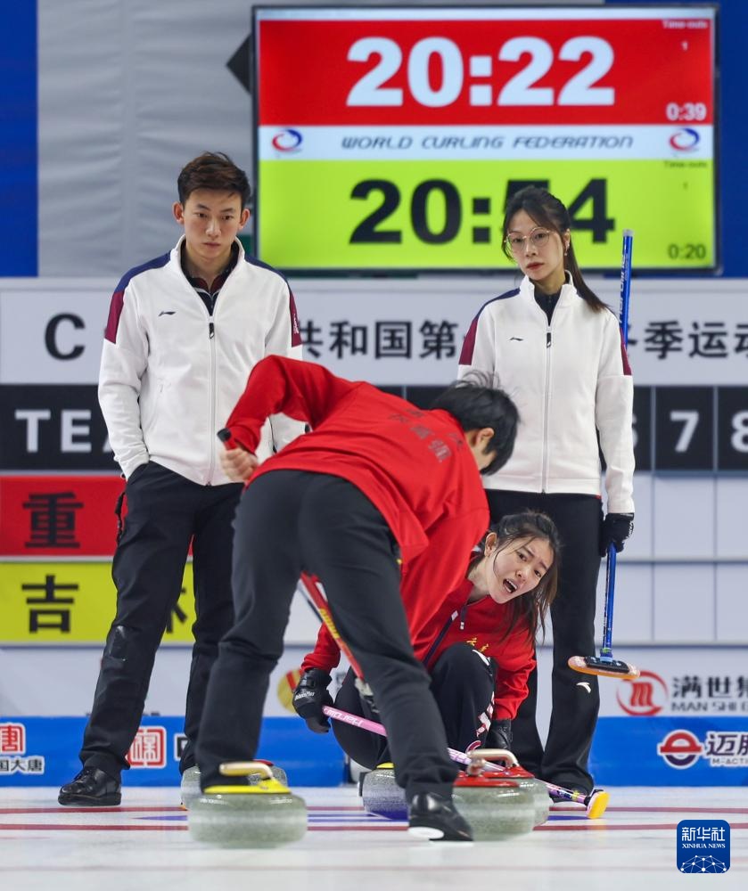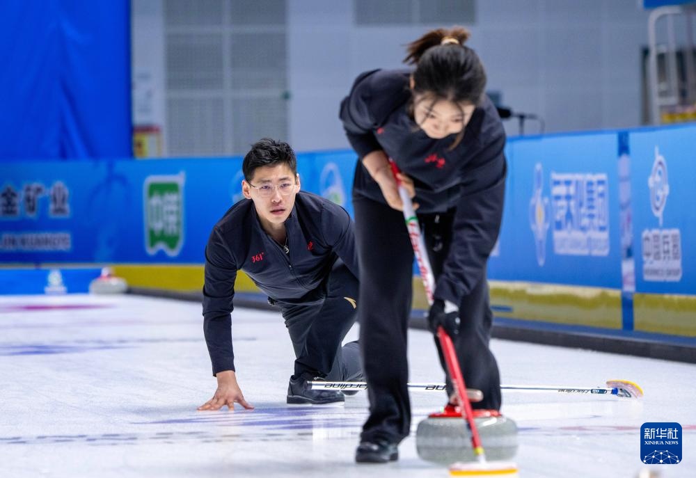 當(dāng)日,第十四屆全國(guó)冬季運(yùn)動(dòng)會(huì)冰壺項(xiàng)目公開組混合雙人循環(huán)賽第六輪比賽在呼倫貝爾市內(nèi)蒙古冰上運(yùn)動(dòng)訓(xùn)練中心舉行。