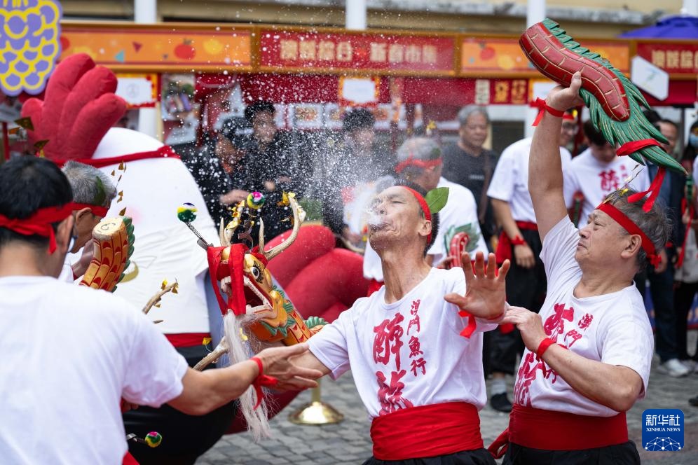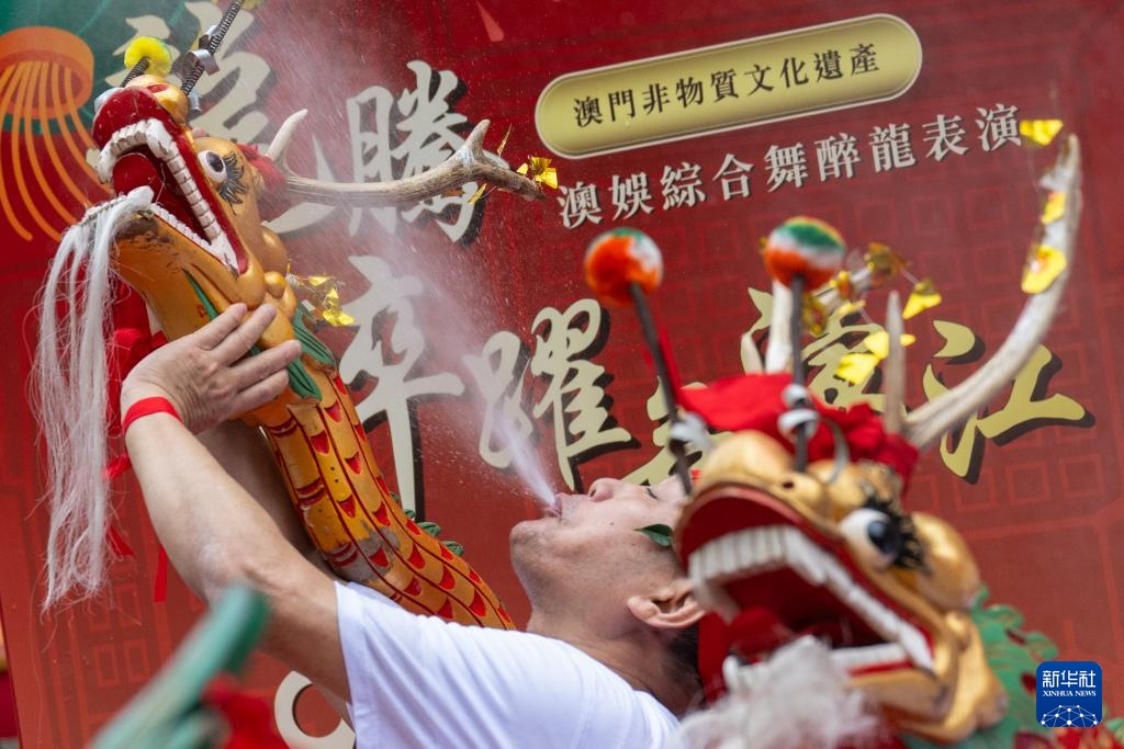 當日,澳門鮮魚行總會在澳門中區舉行“龍騰醉耀舞濠江”舞醉龍表演,展現非物質文化遺產的魅力,熱鬧賀新春。