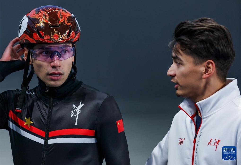 2月18日,天津隊選手劉少昂(左)在決賽結束后與隊友劉少林交流。新華社記者 黃偉 攝