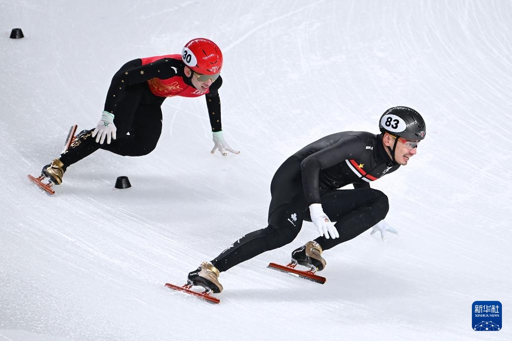 2月18日,黑龍江隊(duì)選手任子威(左)在比賽中。新華社記者 黃偉 攝