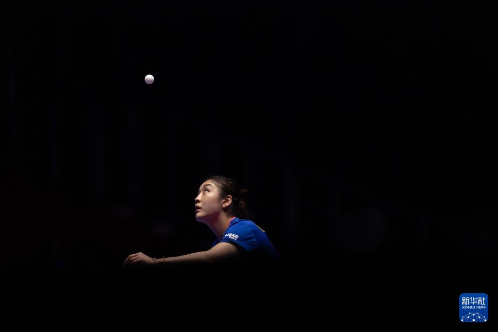 2月18日,中國隊球員陳夢在第二盤比賽中回球。最終,她3比1戰勝西班牙隊球員張璇。新華社記者 張濤 攝