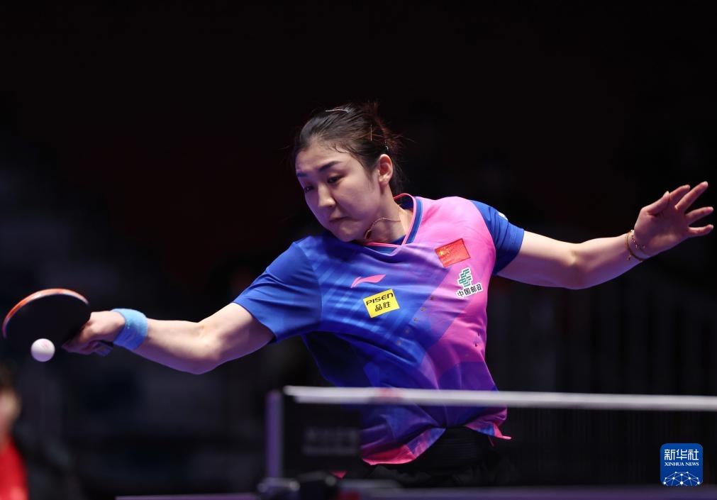 2月18日,中國隊球員陳夢在第二盤比賽中回球。最終,她3比1戰勝西班牙隊球員張璇。新華社記者 楊世堯 攝