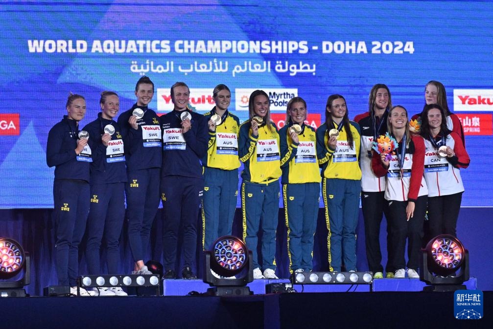 當(dāng)日,2024年世界游泳錦標(biāo)賽游泳項(xiàng)目女子4X100米混合泳接力決賽在卡塔爾多哈舉行。