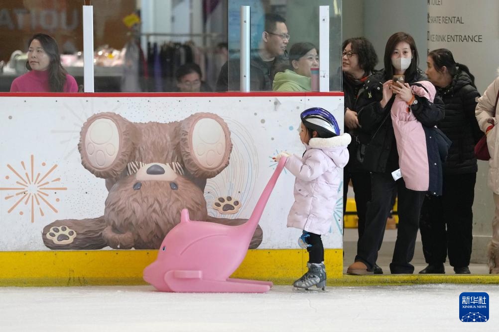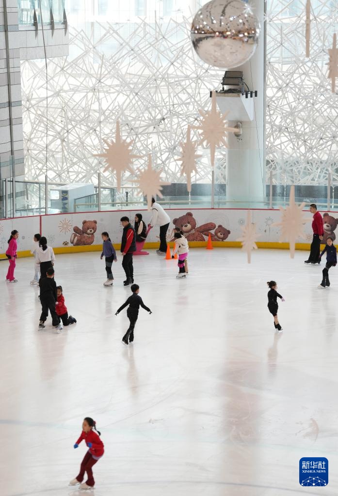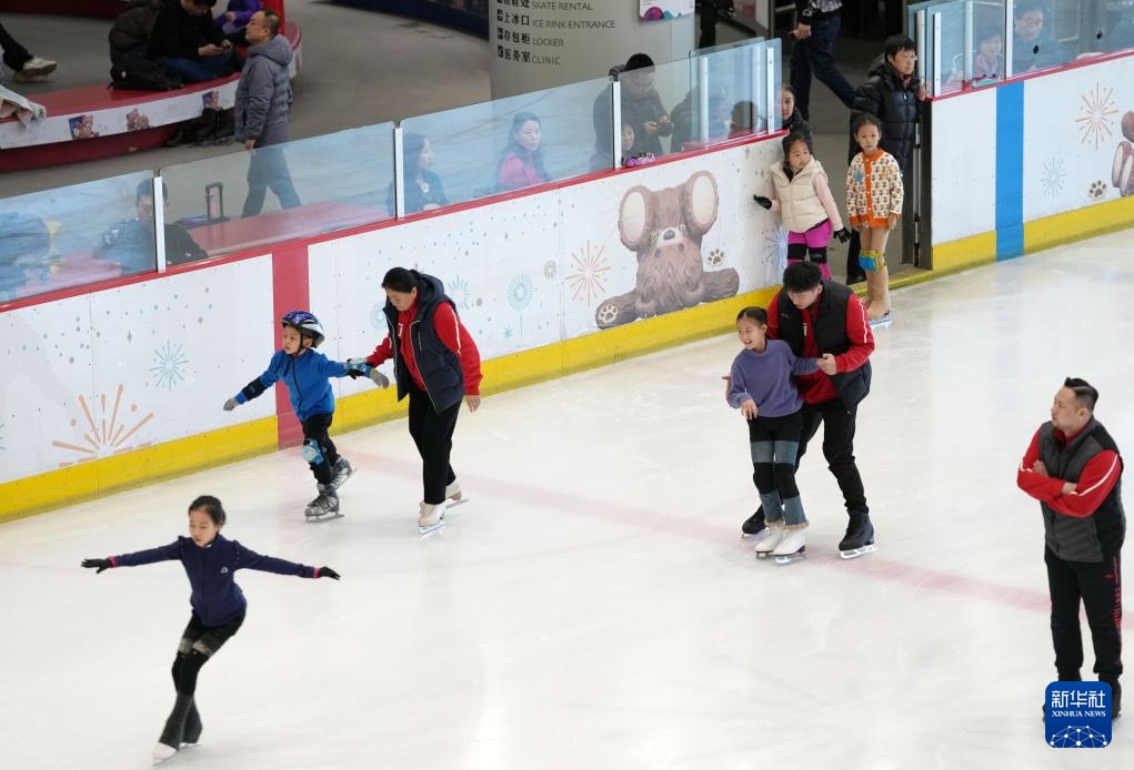 這是2月19日,冰場小學員在沈陽冰紛萬象滑冰場滑冰。新華社記者 李鋼 攝