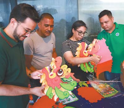 2月3日,巴西民眾在累西腓春節廟會活動現場體驗制作手工龍頭。本報記者 陳海琪攝