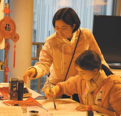 11歲的拜德細心地勾勒著龍的輪廓。他說:“我知道十二生肖,龍在中國文化里代表著力量和好運。”正在學寫“福”字的愛麗說:“我爺爺和爸爸都去過中國,說那里風景很美,我長大也要去中國看看。”