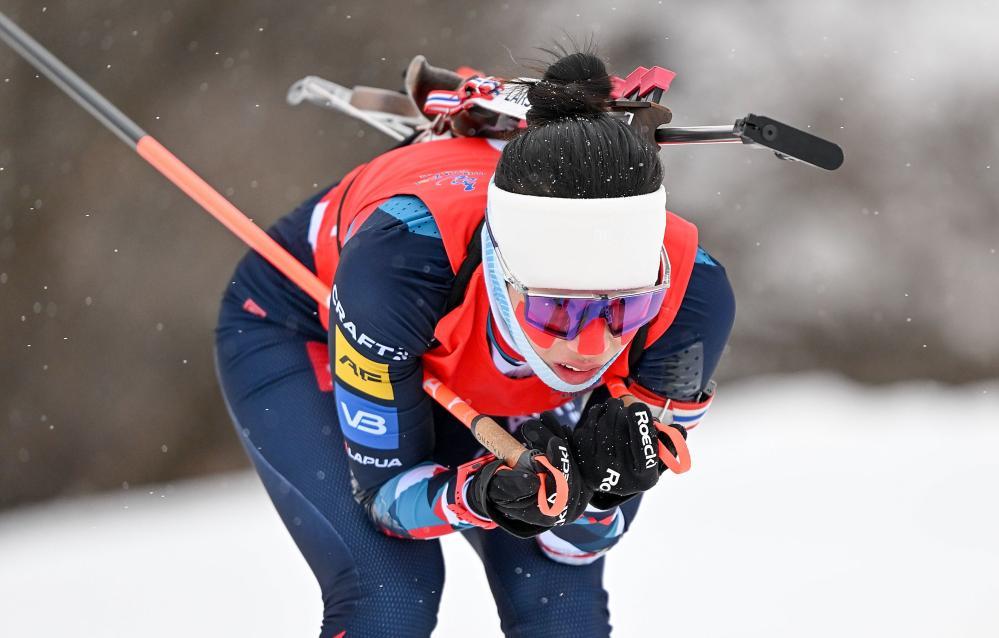河北隊褚源蒙克服寒潮天氣影響,憑借全場射擊零脫靶的出色表現,奪得冬季兩項公開組女子12.5公里集體出發項目金牌。截至目前,在褚源蒙參加的4項比賽中,她已獲得3枚金牌1枚銀牌。