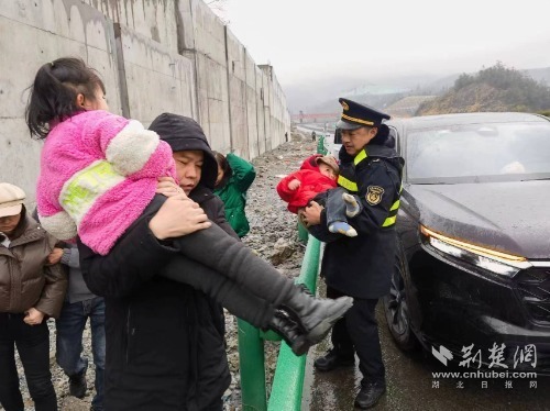 經(jīng)現(xiàn)場(chǎng)了解,司乘人員有人受傷、還有幾名兒童。此時(shí)正在下著雨夾雪,兒童只能站在應(yīng)急車道護(hù)欄外,為保障司乘人員安全,路政人員緊急將小孩送至執(zhí)法車內(nèi),安排人員將他們送至就近收費(fèi)站,等候家人。
