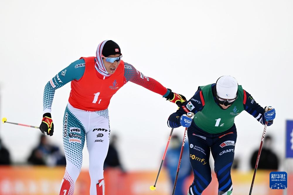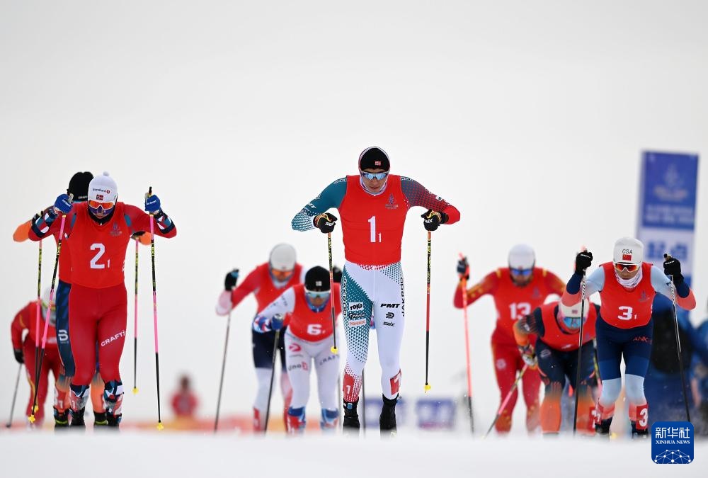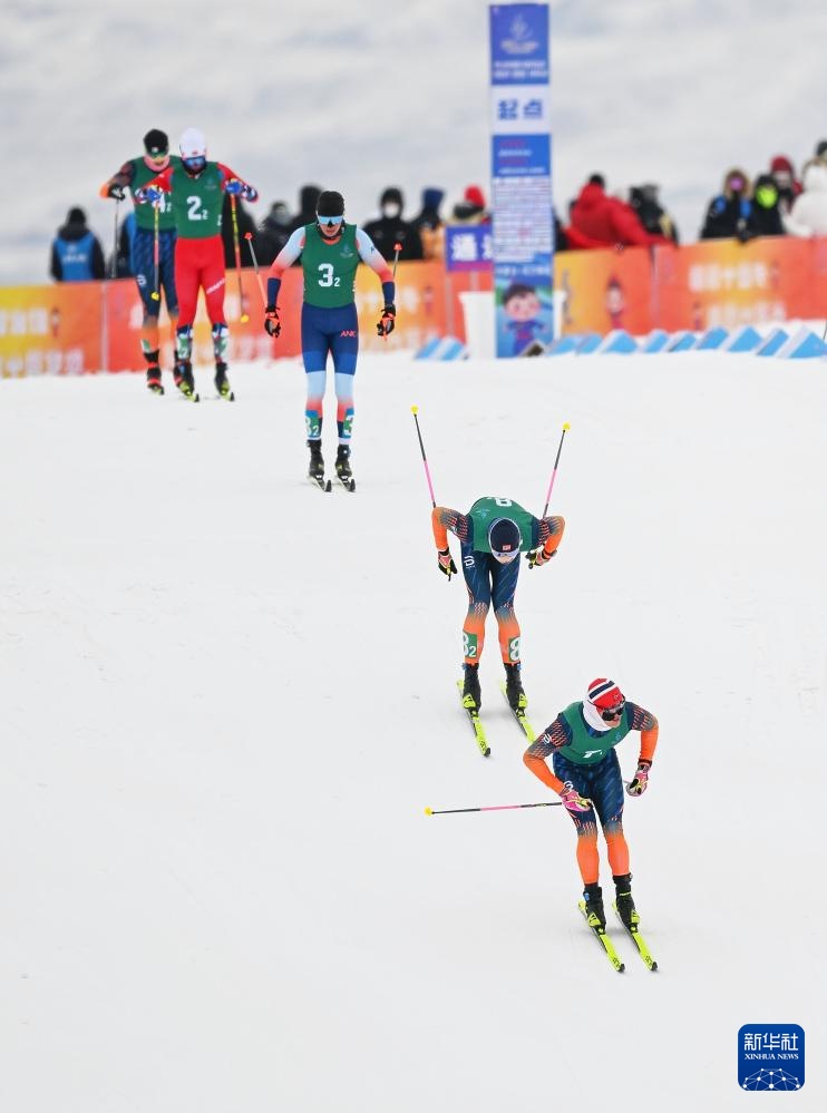 2月21日,遼寧隊恩特馬克·毛吾列提別克(前中)在比賽中出發。新華社記者 趙子碩 攝