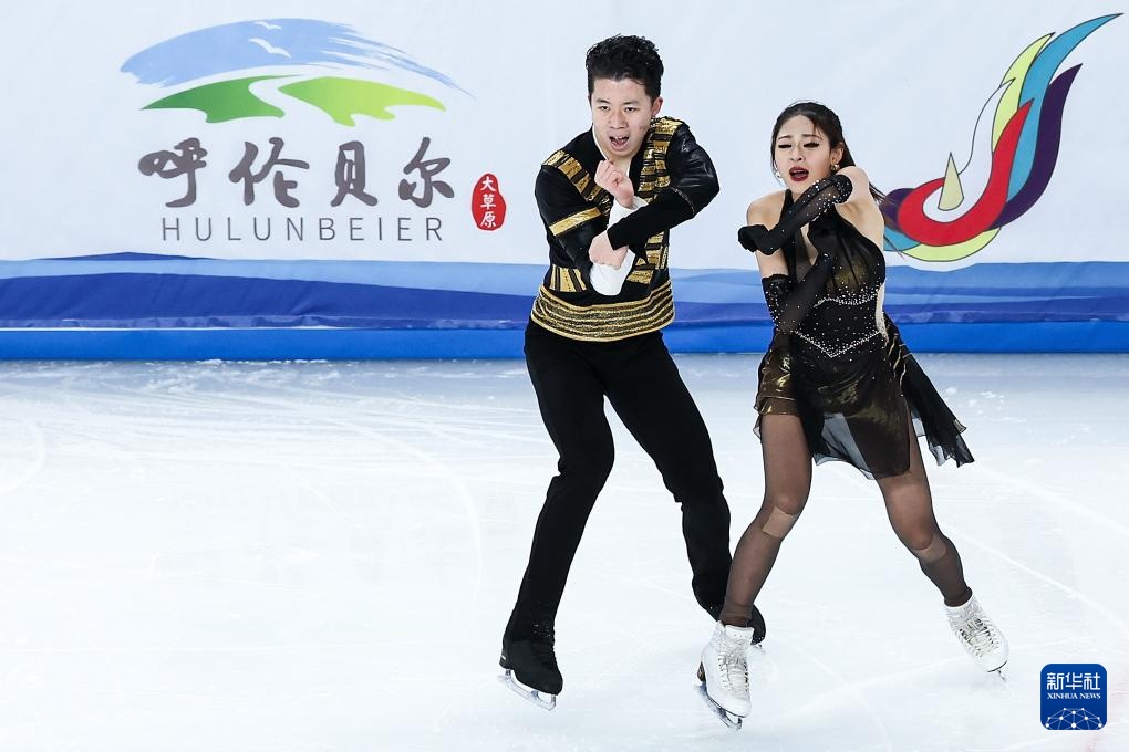 2月21日,黑龍江隊組合陳溪梓(前)/邢珈寧在比賽中,他們以70.17分的成績位列該項目第二。新華社記者 連振 攝