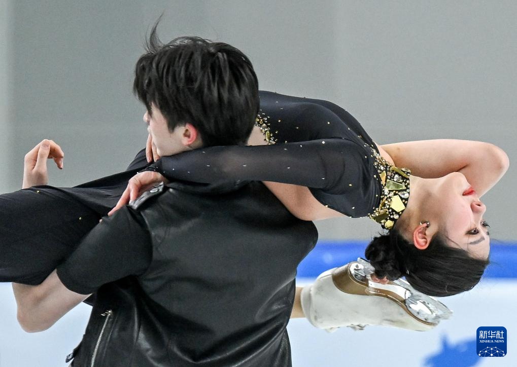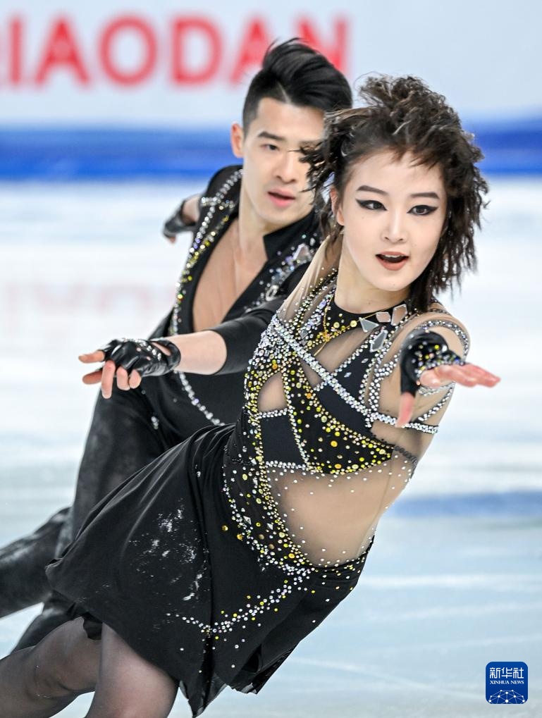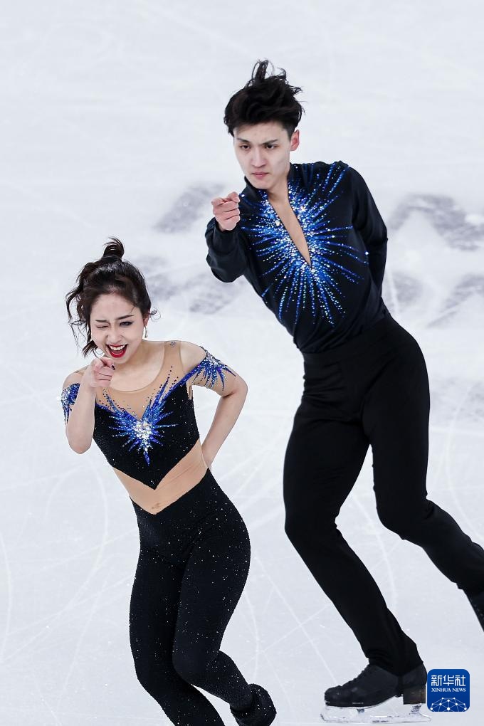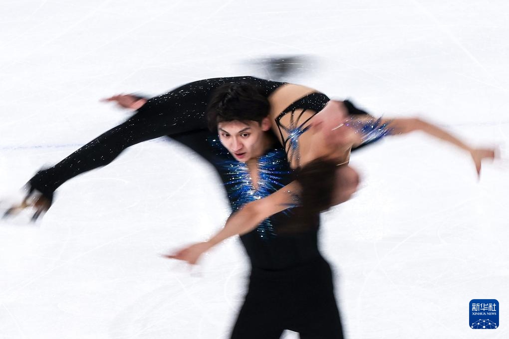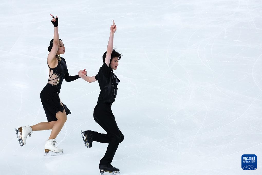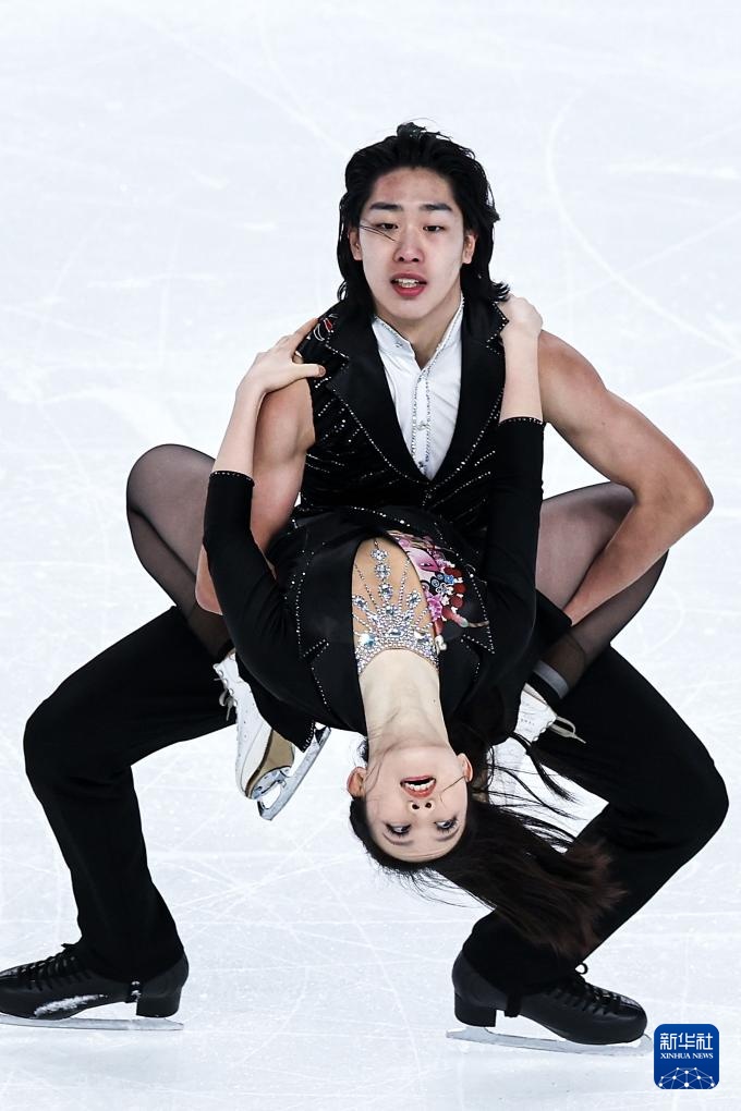 2月21日,廣東隊組合肖紫兮(右)/何凌昊在比賽中,他們以61.94分的成績位列該項目第四。新華社記者 李博 攝