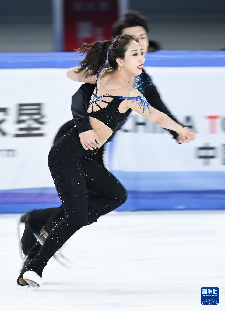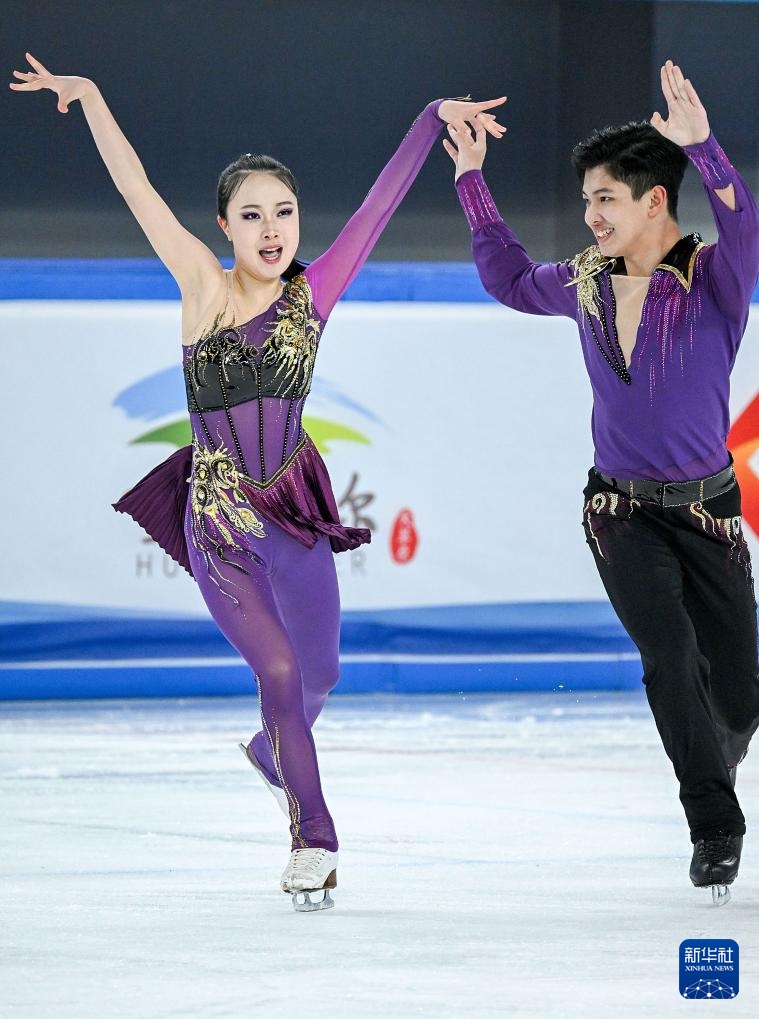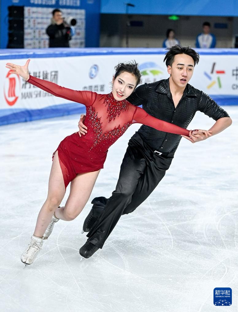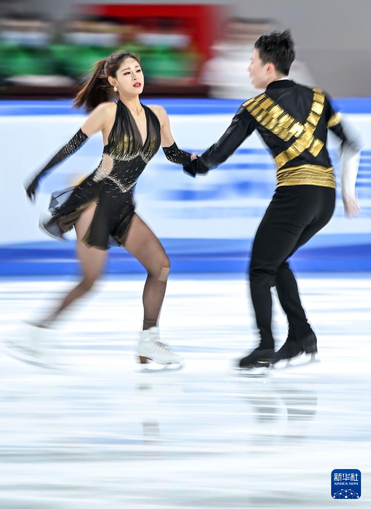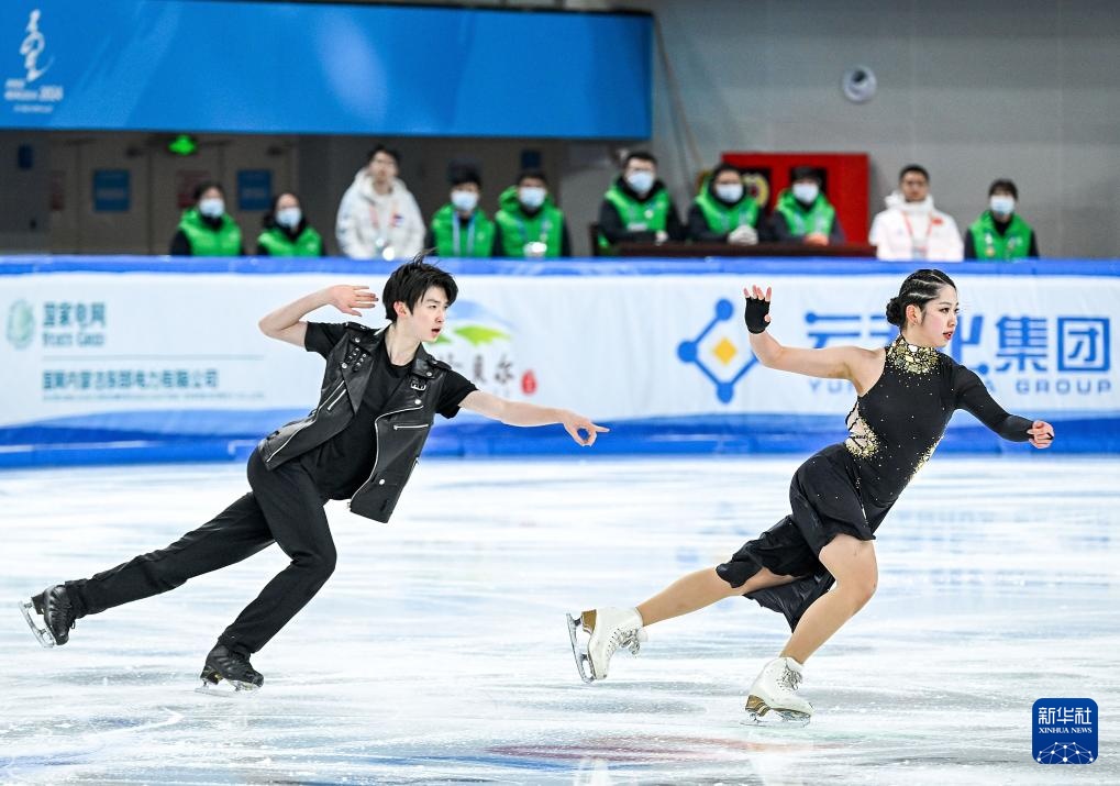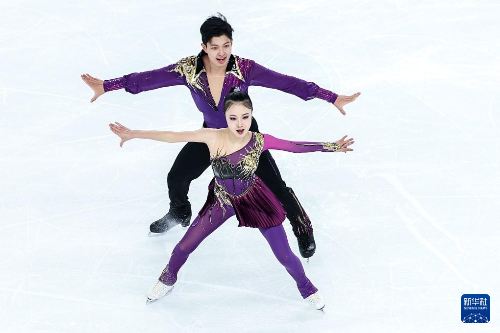 2月21日,廣東隊組合肖紫兮(右)/何凌昊在比賽中,他們以61.94分的成績位列該項目第四。新華社記者 李博 攝