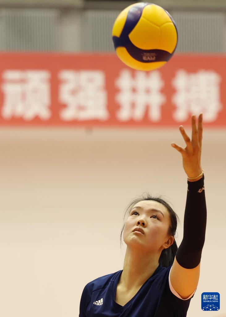 2月22日,中國女排球員李盈瑩在訓練中。新華社記者 賈浩成 攝