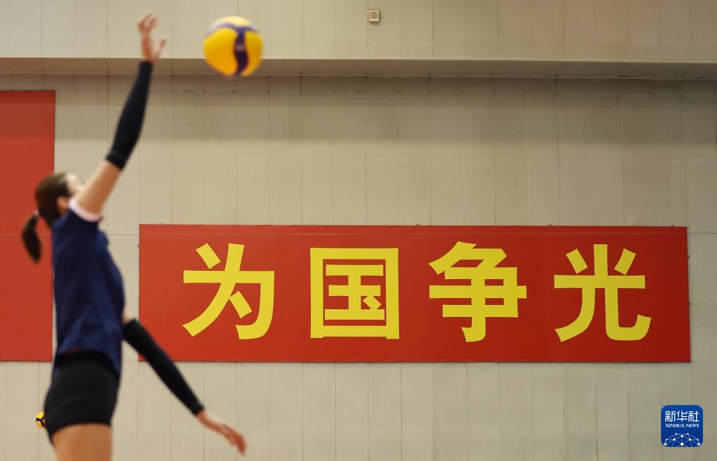2月22日,中國女排球員在訓練中。新華社記者 賈浩成 攝