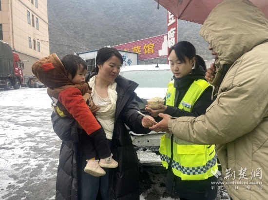 荊楚網(wǎng)(湖北日報網(wǎng))訊(通訊員劉雨微)“大人還好,主要是我兩個孩子都太小了,謝謝你們?yōu)槲覀兲峁┦澄铩薄?月22日上午8時許,一位帶著兩個年幼孩子的楊女士因惡劣天氣和車輛追尾事故,向滬渝高速榔坪收費站求助。收費站的工作人員和志愿者迅速伸出援手,在冰雪天氣中為司乘人員搭建起“暖心驛站”。