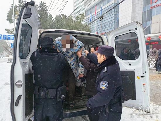 “聽說下雪警察不抓人?真不可信!”21日晚,涉嫌盜竊的犯罪嫌疑人黃某、吳某準備趁著冰雪天向省外逃竄,涂家垴派出所民警驅車一百多公里趕赴咸寧火車站,將黃某、吳某抓獲并采取強制措施。